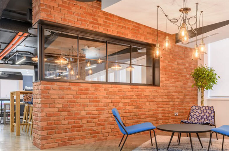 Nuestros compañeros ingleses de Vtec Group han participado en la decoración de la recepción y las zonas de reunión para esta empresa, proveedor líder de inteligencia de mercado global. El reto era importante, ya que el sistema tenía que ser flexible para adaptarse a los diferentes usos. El panel decorativo elegido fue el de MSD Realistic Wall de Ladrillo macizo terracota, muy apropiado en la city, que se ha utilizado para revestir columnas, paredes y en las estanterías a medida.
